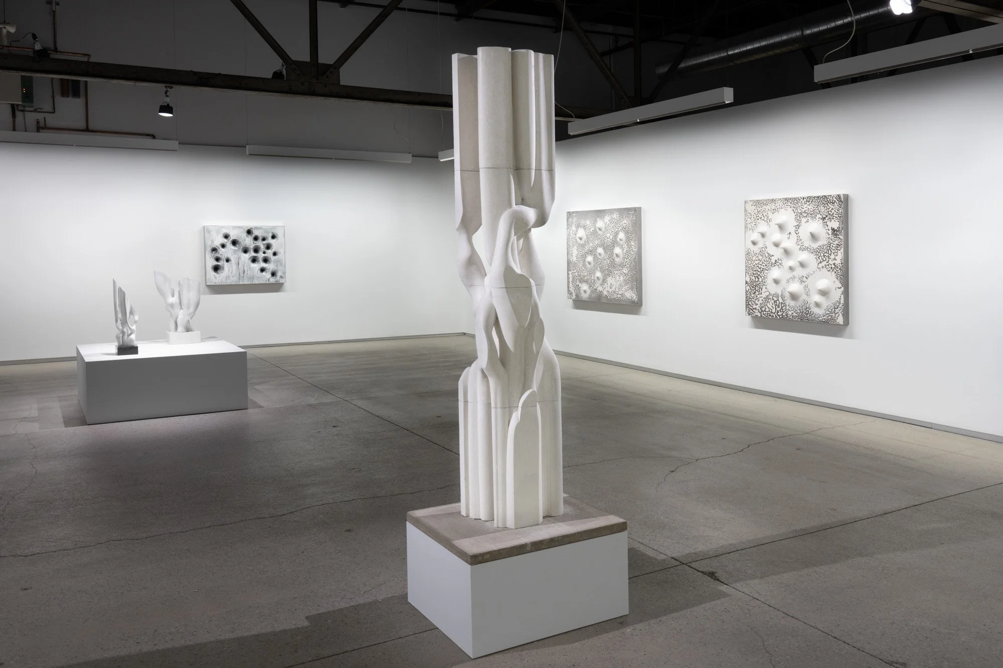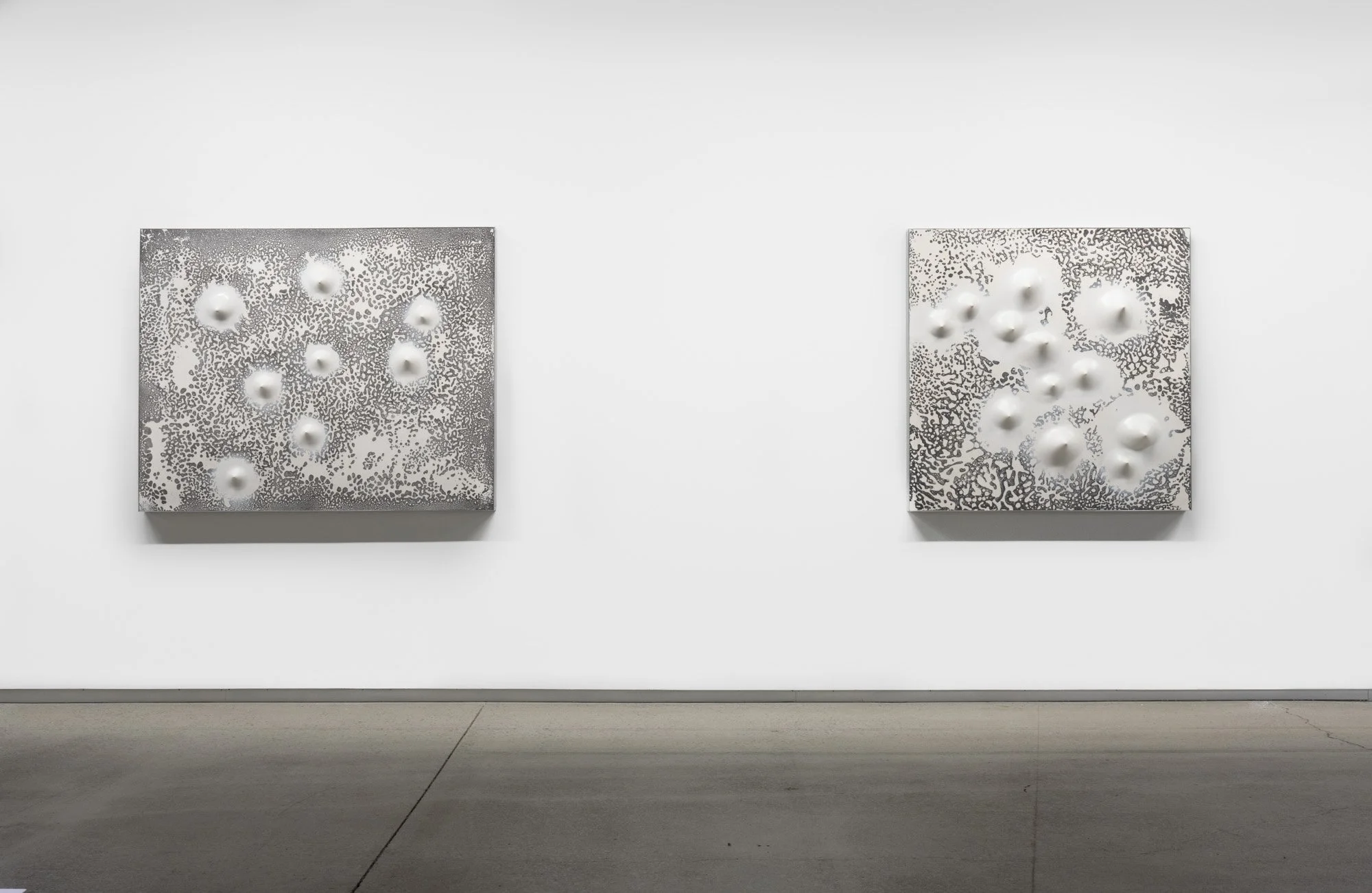 With Triste Entropique, Michel de Broin reveals a series of new sculptures and image-based works that stand as monuments to a dissipated world. Idols of exhaust, of exhaustion, they condense aethereal flux into mineral form. Dissolution and intensity, erasure and effusion flow as an undercurrent through the exhibition’s material surfaces, which affix these forces for a moment in time and space.